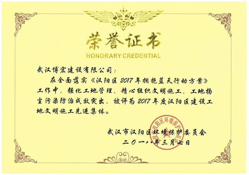 2017年度漢陽區(qū)建設(shè)工地文明施工先進(jìn)集體