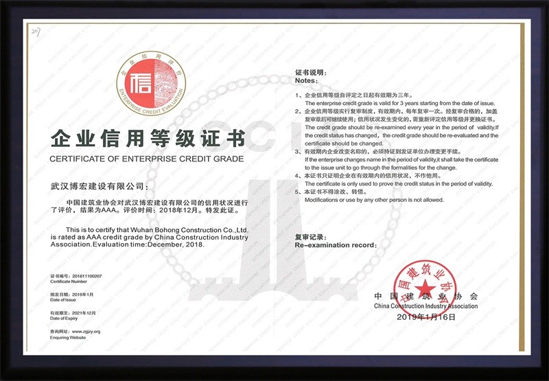 中國建筑協(xié)會(huì)3A信用等級(jí)證書(2019年1月)