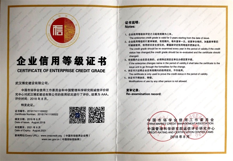 中國市場(chǎng)學(xué)會(huì)企業(yè)信用等級(jí)證書